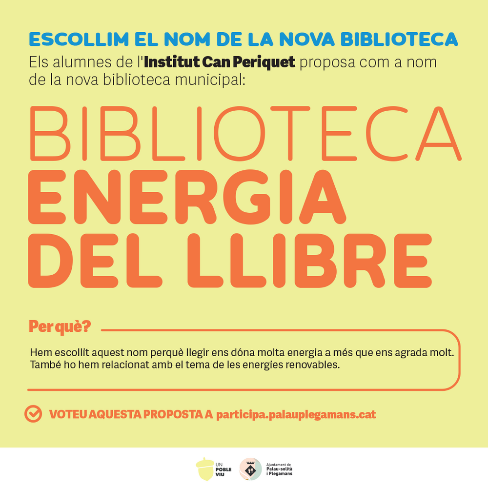 The students of the Can Periquet institute propose the name of the new municipal library: Biblioteca l'Energia del Llibre